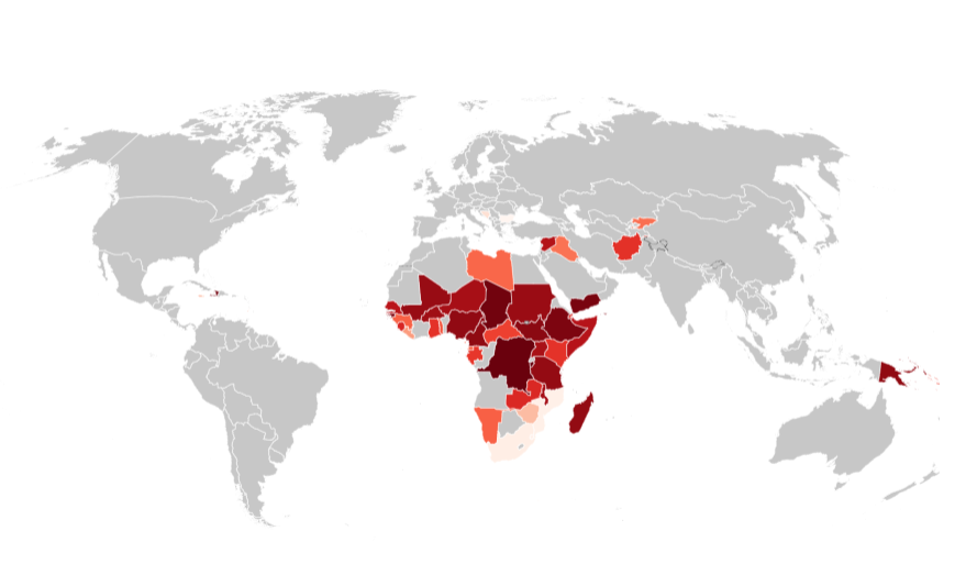 In this regard, there was a wide disparity of crisis preparedness between the more developed countries and less developed countries. Those in the European and North American regions had access to more advanced technology, which included real-time surveillance, developed health systems, workforce readiness, research and laboratory resources, while those in the poorer nations in Africa and Asia have been unable to access basic healthcare and preventive resources. Even today, higher income nations have (on average) vaccinated 72% of their eligible population, while in lower-income countries, just (an average of) 5.5% of the population have been inoculated. In countries where there is rampant civil unrest or conflict, poor infrastructure, or inadequate healthcare systems, citizens are unable to easily receive their dose(s). The countries of Yemen and South Sudan can fault civil war and ongoing combat as the reasons for being among the lowest vaccinated countries in the world. The map below shows which countries, as of February 2, 2022, have less than 33% of the population fully vaccinated.