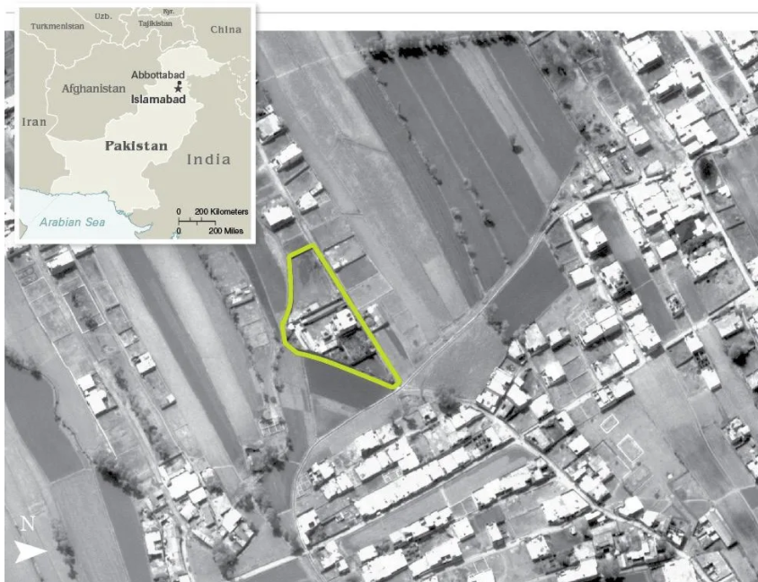 Aerial view of Osama bin Laden's compound in the Pakistani city of Abbottabad, made by the CIA